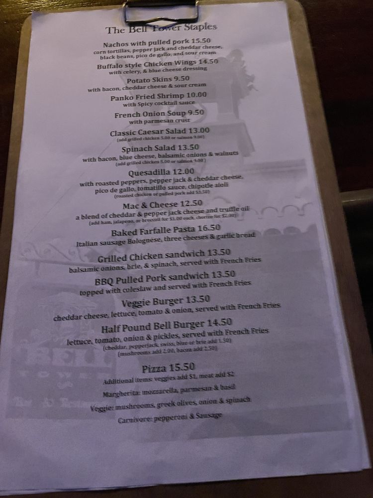 Bell Tower Menu